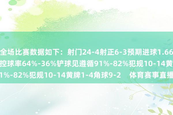 全场比赛数据如下:射门24-4射正6-3预期进球1.66-0.30进球契机2-1控球率64%-36%铲球见遵循91%-82%犯规10-14黄牌1-4角球9-2 体育赛事直播